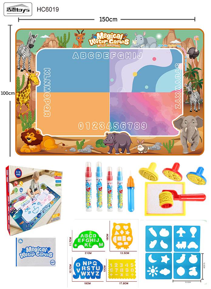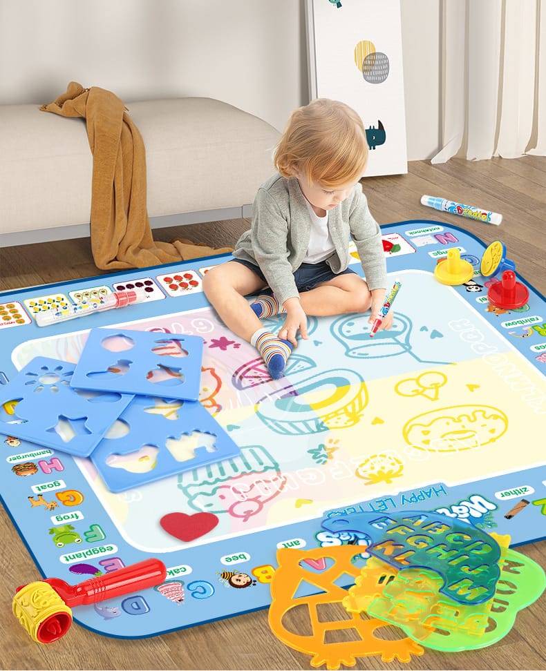 • Drawing Mechanism: Drawings appear when the water-filled pens touch the surface and disappear as the water dries, allowing for endless reuse.