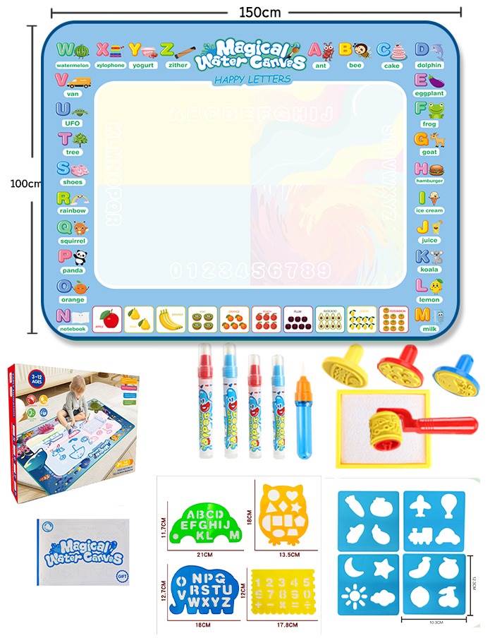 • Instructions/Booklet: A small blue booklet labeled "Magical Water Canvas" is included.